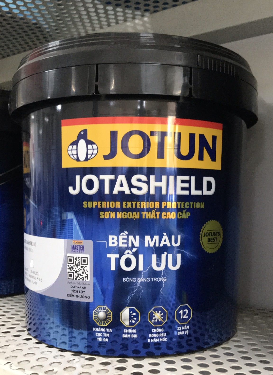 Sơn Jotun Jotashield Bền Màu Tối Ưu là sản phẩm sơn ngoại thất cao cấp của Jotun được phát triển dựa trên công nghệ tiên tiến nhất và nghiên cứu phù hợp với thời tiết của vùng khí hậu nhiệt đới khắc nghiệt giúp bảo vệ ngôi nhà bạn luôn như mới trong nhiều năm. Bộ sưu tập màu sắc đa dạng của Jotashield cùng các tính năng ưu việt đã được chứng minh khi trở thành sự lựa chọn hàng đầu của các kiệt tác kiến trúc và trở thành sản phẩm sơn ngoại thất tôt nhất trên thị trường hiện nay.