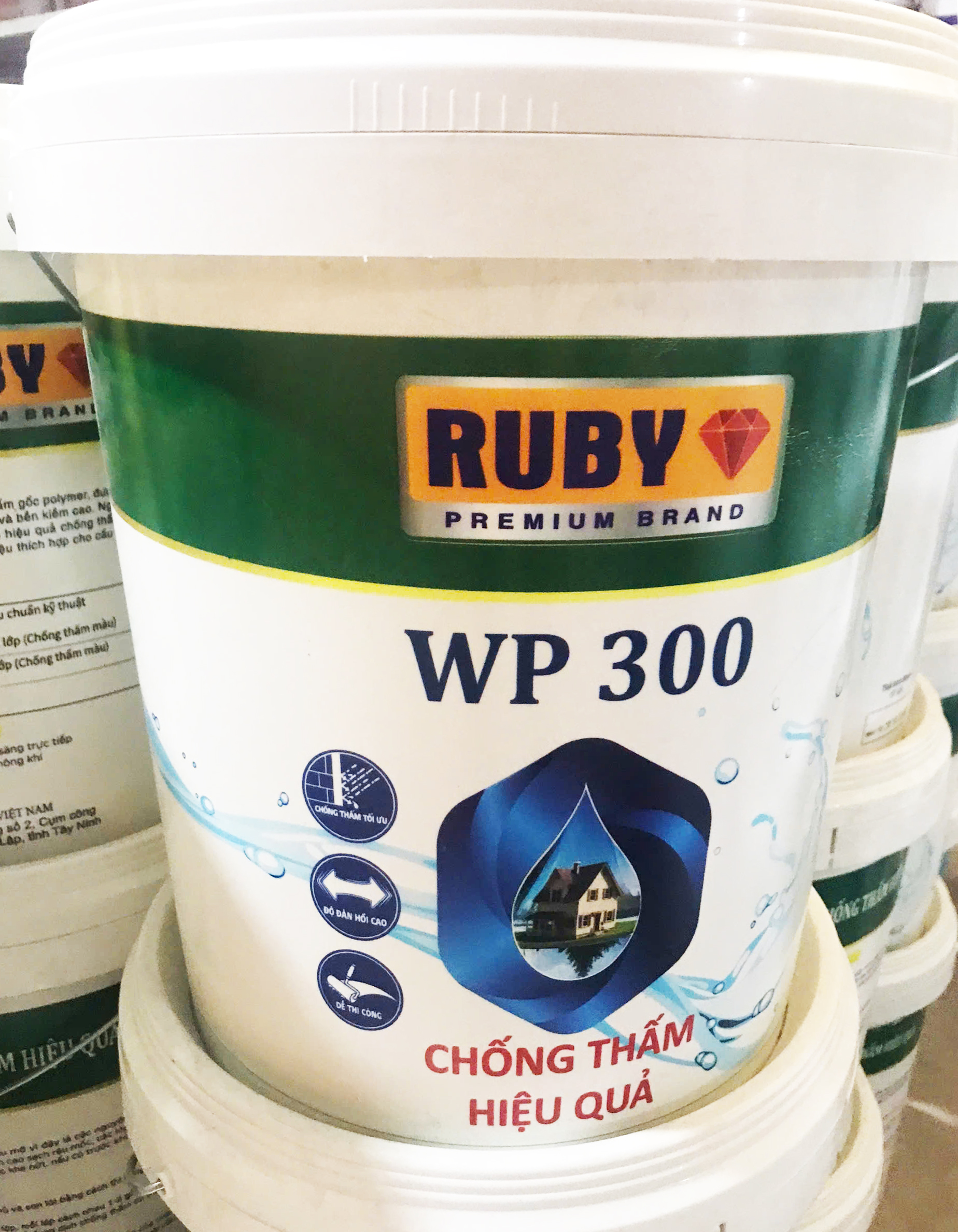 RUBY WP 300 Sơn chống thấm cao cấp hiệu quả cao: là vật liệu chống thấm gốc polymer được tổng hợp từ nhựa arcylic nên có tính kháng nước và bền kiềm cao.